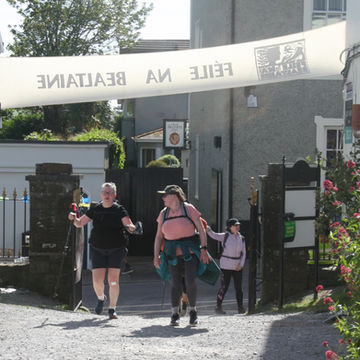 A bridge crossing the Garfinny River sees the Kerry Camino realigning itself in a south-westerly direction and heading straight for the town of Dingle. The trail traverses the popular motorist drive through Conor’s Pass heading to the North. This final 4km downhill road section will seem to draw out for an eternity for those with tired legs as the town is visible from such a distance.The wait however is well worth it as you will be entering one of the great towns in West Kerry famous for its dolphin, pubs and restaurants.This will prove a fitting end to what will have been a unique and enjoyable three day experience.